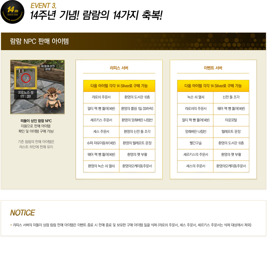 À̺¥Æ® ¼¹ö 14ÁÖ³â ÁÖÈ (ij½Ã) »ç¿ë È¿°ú